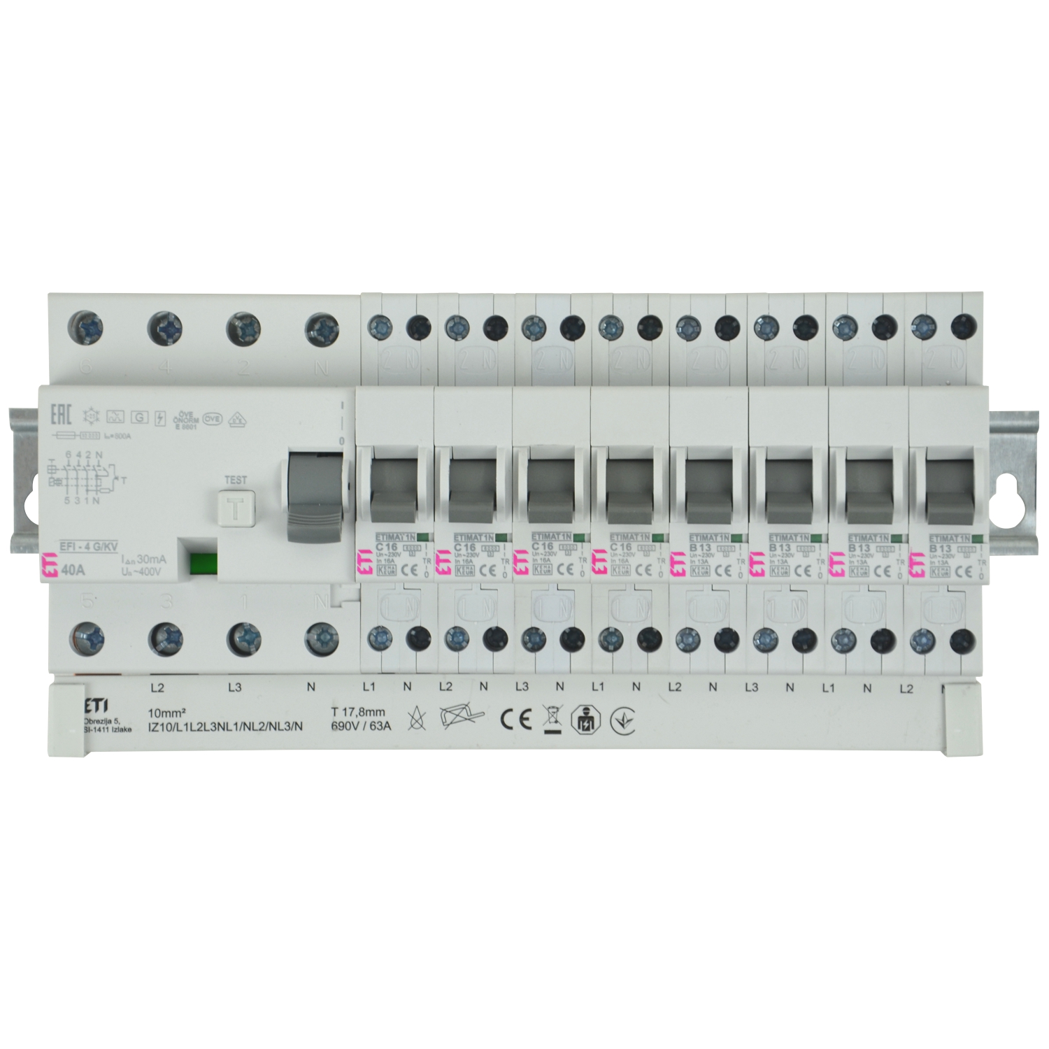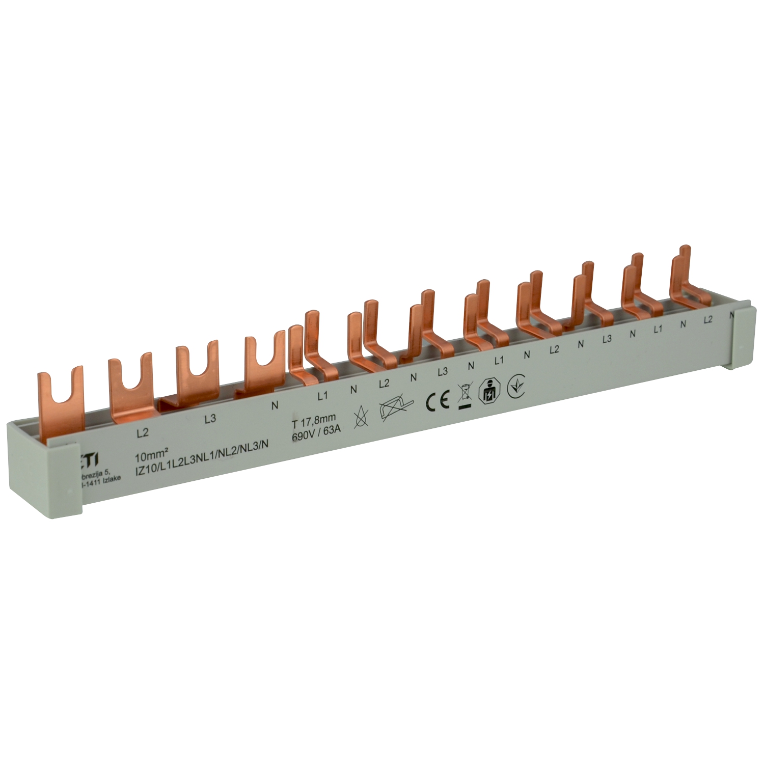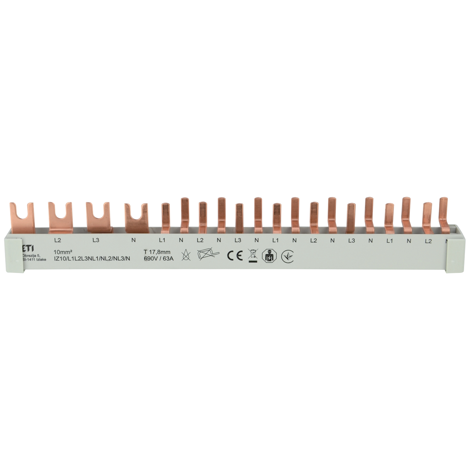 Gabel/Stift-Sammelschiene 4p 12TE L123~N~L~N