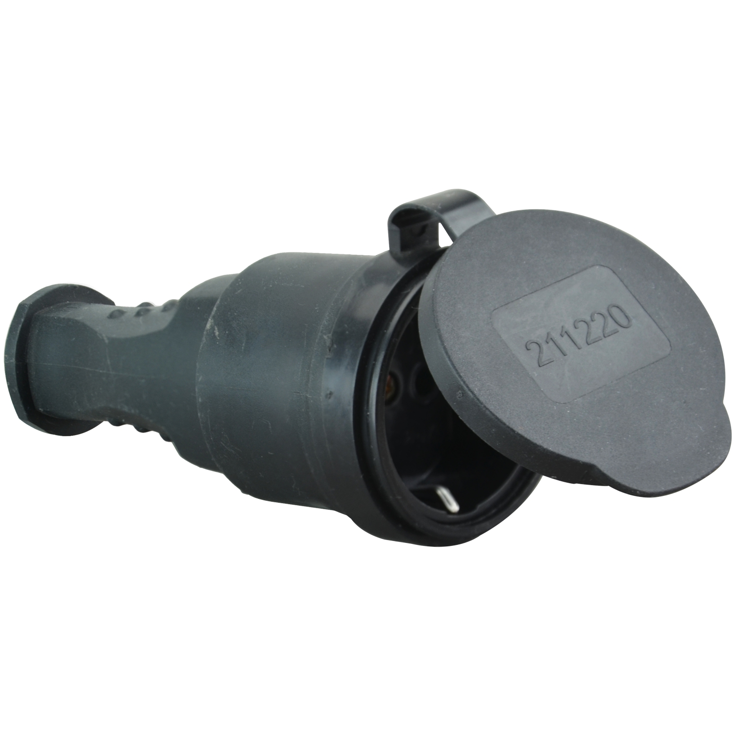 Schuko-Vollgummikupplung mit Deckel schwarz IP44