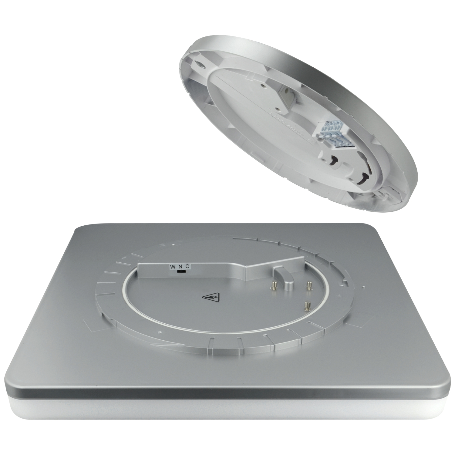 LED Anbauleuchte mit helligkeitsabhängiger Grundlichtfunktion "baseLIGHT" (optional aktivierbar) und wechsel- bzw. austauschbarer Leuchteinheit, Beim Tausch der Leuchteinheit ist kein elektrischer Anschluss bzw. keine Demontage der gesamten Leuchte erforderlich, Befestigung der Leuchteinheit (Abdeckung) einfach mittels Bajonettverschluss, Schutzart IP54, SK II, Farbtemperatur umschaltbar 3000/4000/6500K, 220-240V 50Hz, Montageplatte mit 2-facher Kabeleinführung, Kunststoff-Gehäuse (PC) alu, schlaghemmende Abdeckung aus Kunststoff opal (PC), UV-beständig, CRI=87, Abstrahlwinkel 118°, nicht dimmbar, Temperaturbereich - 15°C bis +35°C